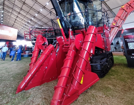 Este ano, a Case IH aproveitou a 29ª Agrishow para apresentar o pacote de atualizações do modelo, que inclui um novo display, um sistema hidráulico que permite uma maior variabilidade do comprimento do tolete com foco na colheita de mudas e um trem de rolo que proporciona 30% mais velocidade.