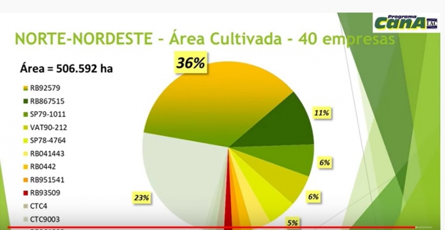 Já Pernambuco, o segundo maior produtor de cana do Nordeste, registra estratificação, nenhuma variedade ultrapassa os 20% de área. Por outro lado, as variedades que ocupam as três primeiras posições: RB9275, SP79-1011 e RB867515 são antigas. Landell ressalta que não há razão para investir em variedades com menor potencial produtivo, uma vez que já estão à disposição variedades modernas com maior potencial produtivo.
