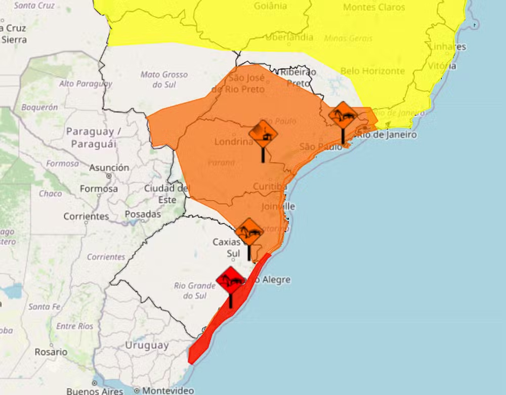 Alerta de perigo está ativo do Rio Grande do Sul ao Rio de Janeiro