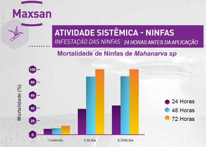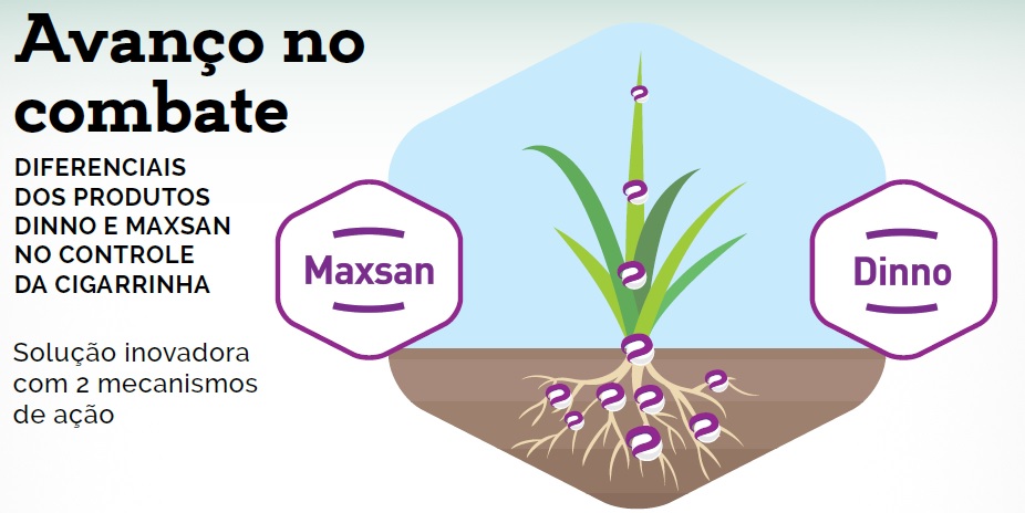 Uma característica inerente a ambos os produtos é a sistemicidade. Desse modo, tanto o Maxsan quanto o Dinno possuem a capacidade de translocação pela cana-de-açúcar - agindo da base para as folhas ou das folhas para a base -, protendendo toda a planta contra os ataques da cigarrinha, seja das ninfas ao sistema radicular ou dos adultos à parte área.