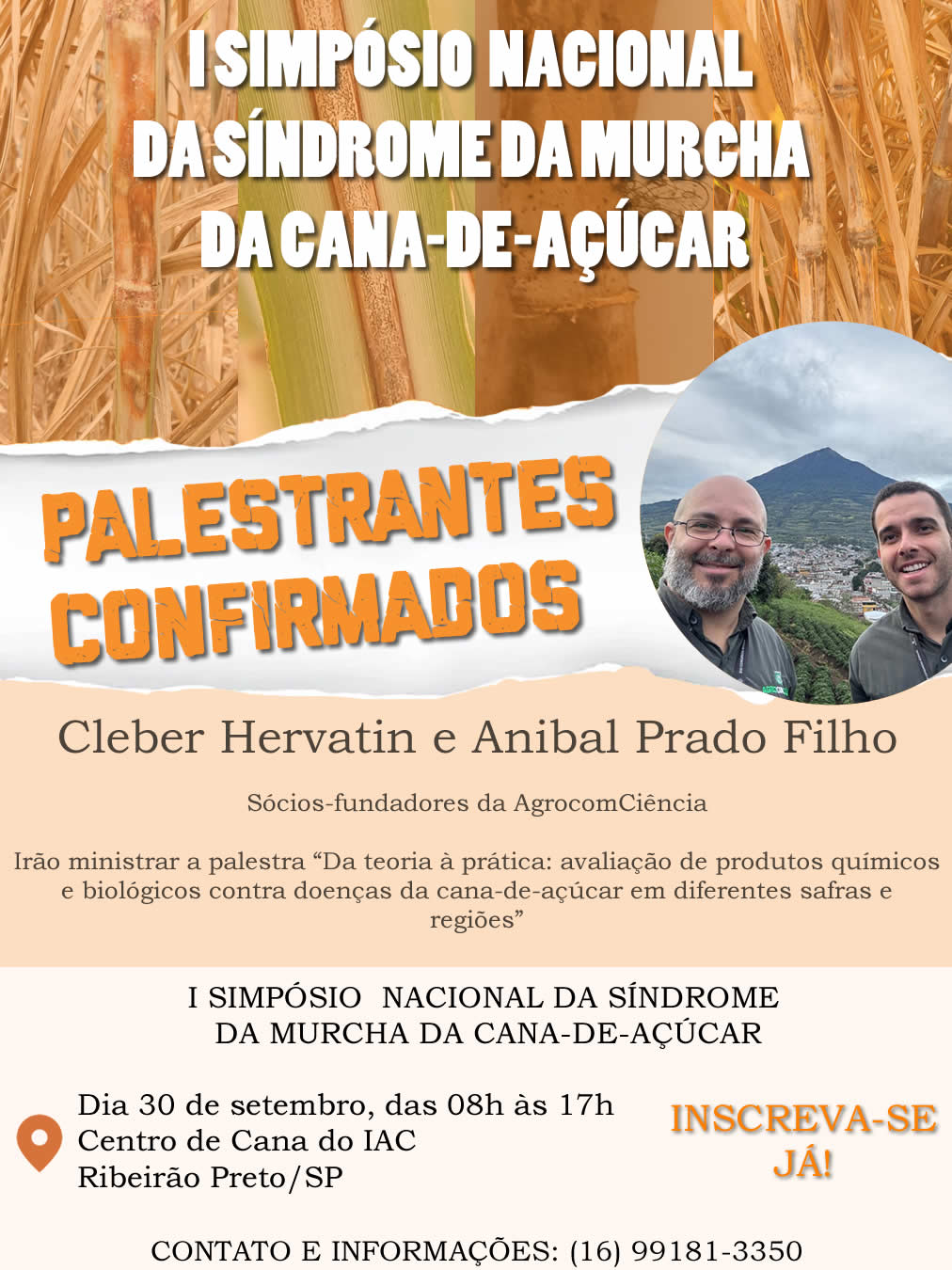 Inscrições: https://www.sympla.com.br/evento/i-simposio-nacional-da-sindrome-da-murcha-da-cana-de-acucar/3083559