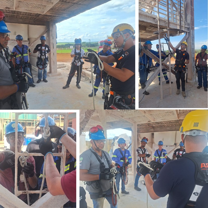 A empresa realizou, entre os dias 23 e 25 de abril, um treinamento voltado para colaboradores que atuam em atividades em altura no parque industrial da usina. A ação envolveu 38 trabalhadores e reforçou práticas essenciais de segurança e operação em áreas elevadas.