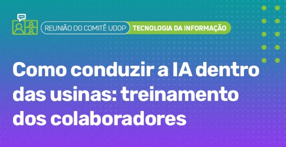 O Comitê UDOP de Tecnologia da Informação promoverá uma reunião on-line na quinta-feira (19), às 11h (horário de Brasília). O encontro abordará o tema "Como implementar a IA nas usinas: treinamento de colaboradores" e contará com a participação de Augusto de Oliveira Carminati, head de futuros da Treesales; Ubiratan Leandro Kotuzi, analista de desenvolvimento de software da Santa Adélia; Weverthon Gimenes, especialista em tecnologia do SENAI Sertãozinho; e William Nogueira, especialista em segurança da Zilor.