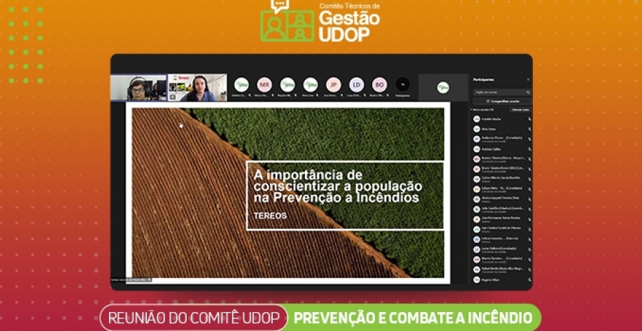 O Comitê Técnico de Prevenção e Combate a Incêndio da UDOP se reuniu na manhã desta terça-feira (11), de forma virtual, para a discussão do tema "A importância de conscientizar a população na prevenção a incêndios", com apresentação da engenheira de sustentabilidade da Tereos, associada da UDOP, Leticia Levorato de Amaro Silva.