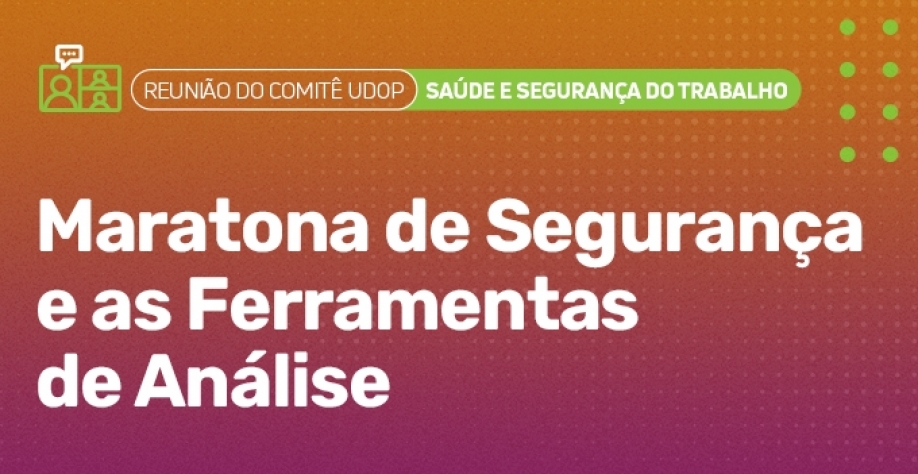 Na terça-feira (20), às 10h (horário de Brasília), o Comitê UDOP de Saúde e Segurança do Trabalho promoverá uma reunião on-line com o tema “Maratona de segurança e as ferramentas de análise”. Esta discussão será conduzida por Fabrício Junior Carloto da Silva, técnico em segurança do trabalho da Raízen, associada da UDOP – União Nacional da Bioenergia.