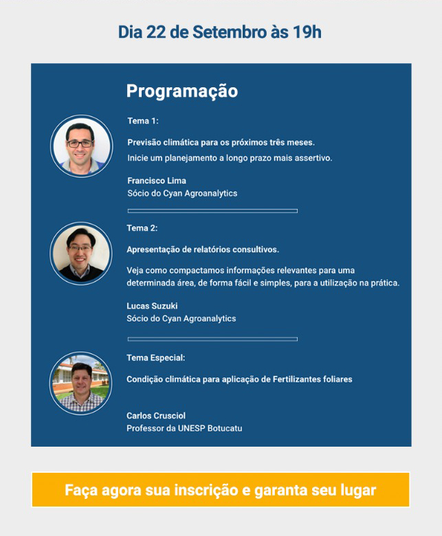 Este será o tema abordado Professor Carlos Crusciol, da UNESP, no 6º Workshop Cyan, que acontece nesta quarta-feira, 22 a partir das 19 horas. Inscrições grátis pelo link: https://bit.ly/canaonline