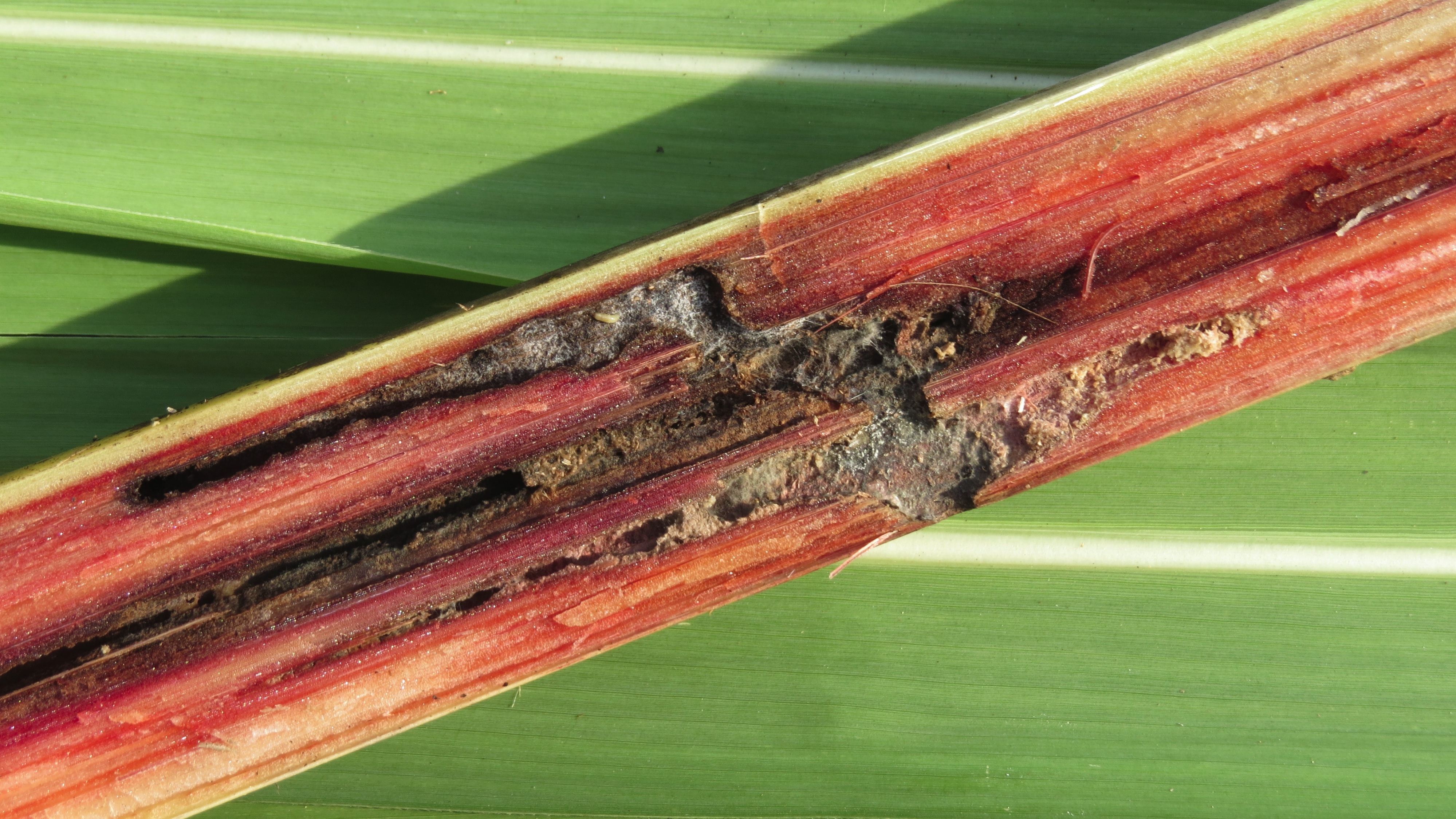 A associação mais comum do Colletotrichum falcatum é com a broca-da-cana, formando o complexo broca – podridão