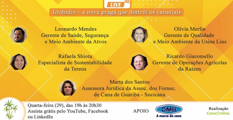 Confira os links para acompanhar a live: Incêndio – a nova praga que destrói os canaviais