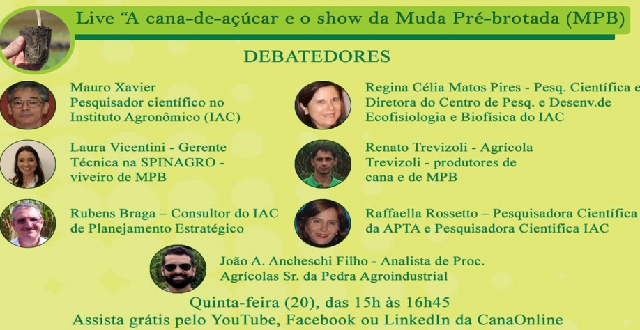 Confira os links para acompanhar grátis a live: A cana-de-açúcar e o show da muda pré-brotada (MPB)