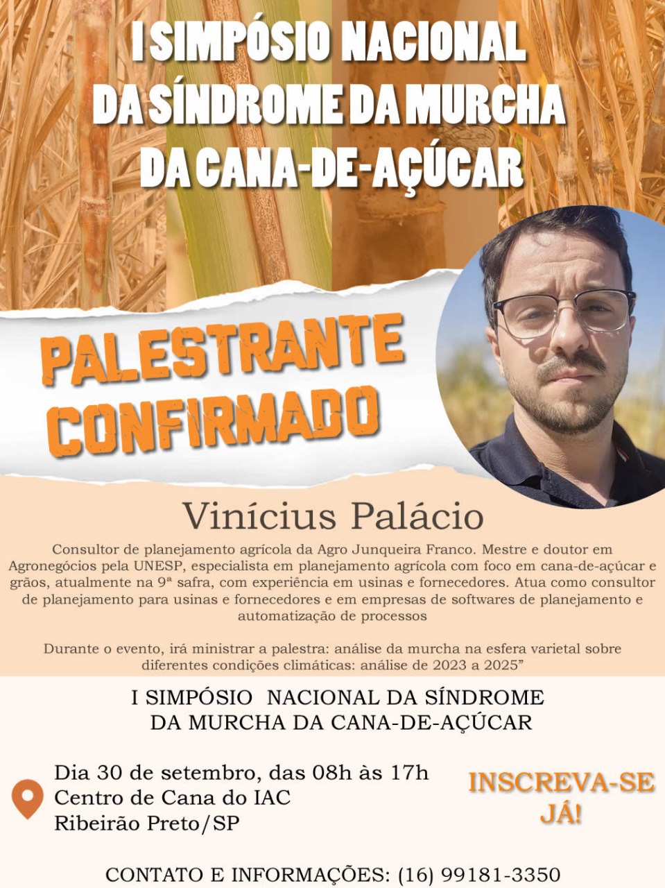 O I Simpósio Nacional da Síndrome da Murcha da Cana-de-Açúcar tem mais um palestrante confirmado: Vinicius Palacio