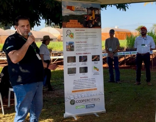 Entre as soluções levadas pela Coopercitrus estão os serviços de amostragem de solo, foliar e de nematóides, mapeamento, sistematização de área e projetos de plantio com foco na classe de declividade. Galvão destacou ainda o uso de pilotos automáticos como tecnologia essencial no combate ao pisoteio e na busca por maior paralelismo e produtividade no canavial. A cooperativa trabalha com múltiplas marcas, adaptando-se à realidade de cada produtor.