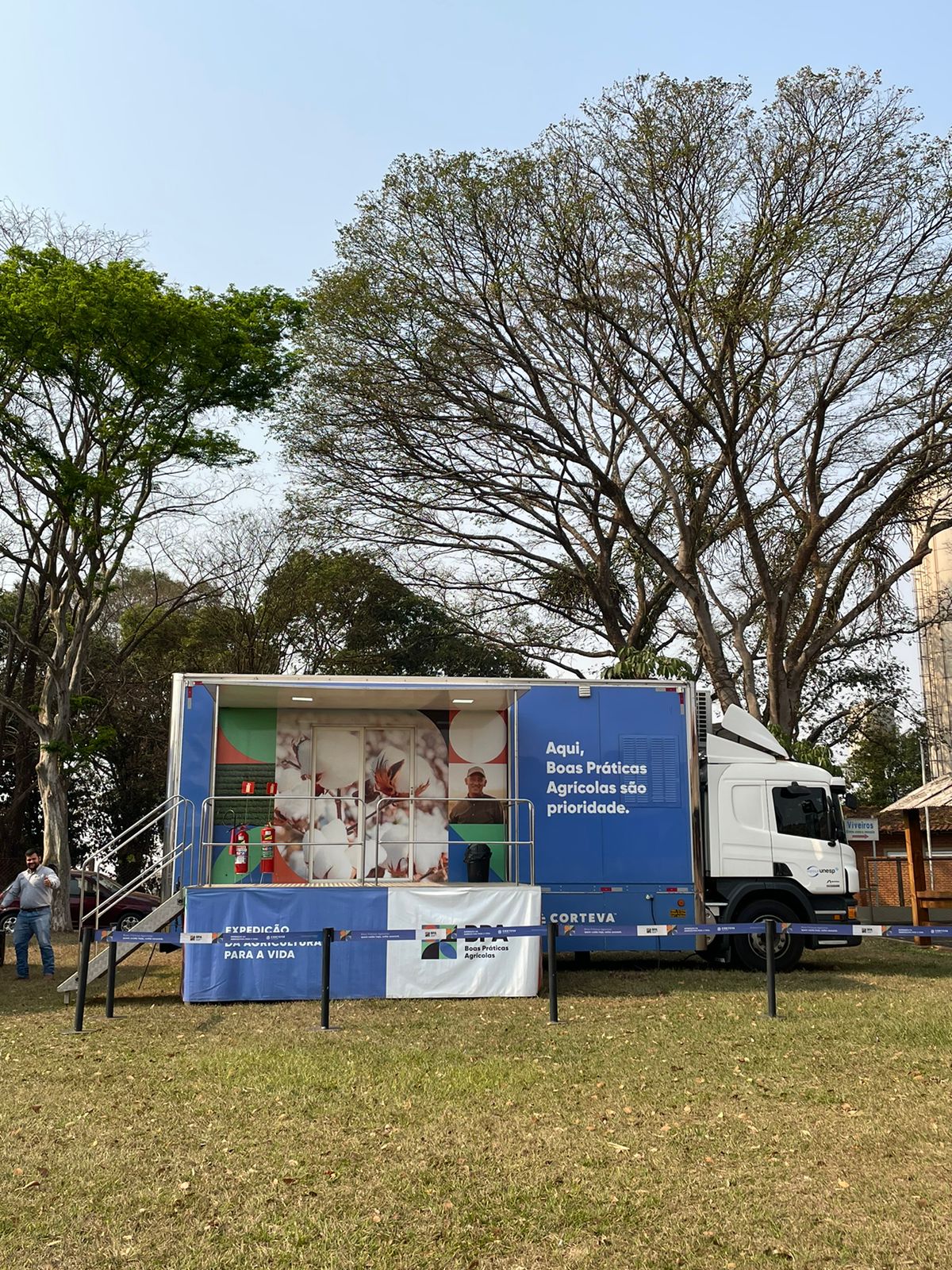 O treinamento integra a “Expedição Agricultura para a Vida” promovida pela Corteva, que consiste em um caminhão itinerante, adaptado em formato de sala de aula, onde são realizados treinamentos sobre boas práticas agrícolas, com orientações sobre o manejo integrado de doenças, plantas daninhas, pragas, tecnologia de aplicação e segurança do trabalhador.