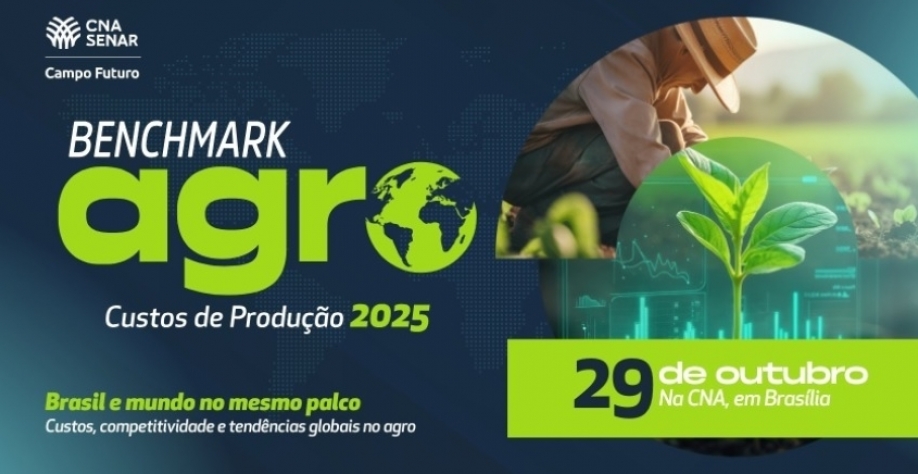 A Confederação da Agricultura e Pecuária do Brasil (CNA) promove, no dia 29 de outubro, o evento “Benchmark Agro – Custos Agropecuários” para discutir o contexto atual de desafios globais que impactam insumos e os custos do setor e o comércio das commodities agropecuárias.