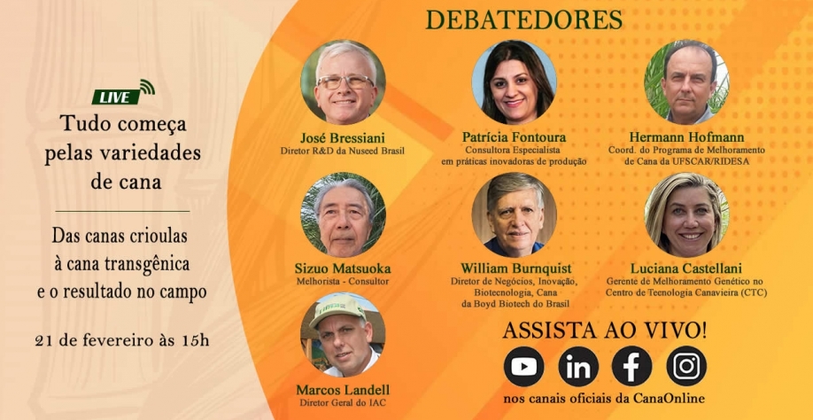 Dia 21/02 tem a Live: Tudo começa pelas variedades de cana