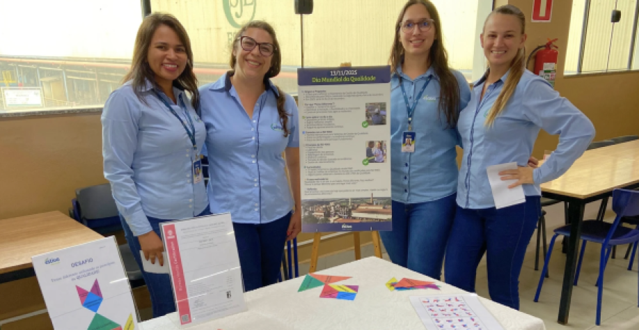 Carla Melo, encarregada de SGI, explica que em 2025 o Dia Mundial da Qualidade teve como tema “Qualidade: Pense Diferente!”. Usando o Tangran, um quebra-cabeça composto por sete peças que podem ser montadas de diversas maneiras, a equipe apresentou os sete princípios da qualidade permitindo aos colaboradores melhor compreensão sobre o tema no seu cotidiano.
