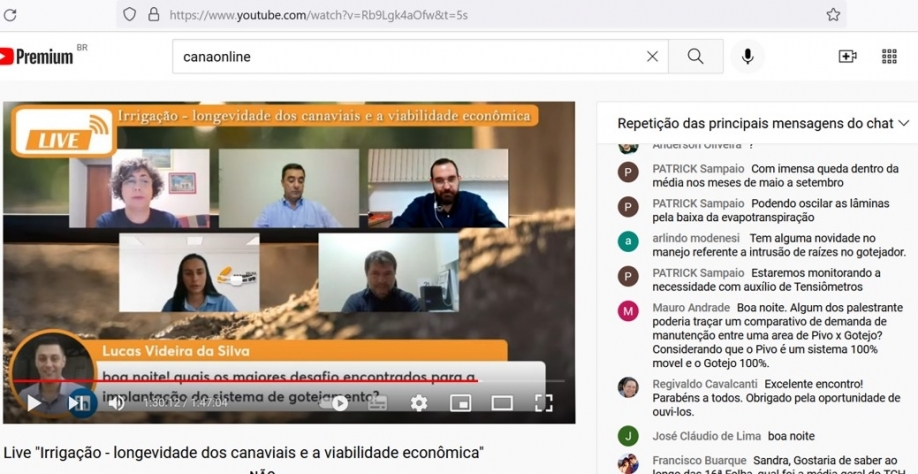 Na noite dessa última quarta-feira, 16, a CanaOnline realizou a live “Irrigação - longevidade dos canaviais e a viabilidade econômica”, que contou com os debatedores: