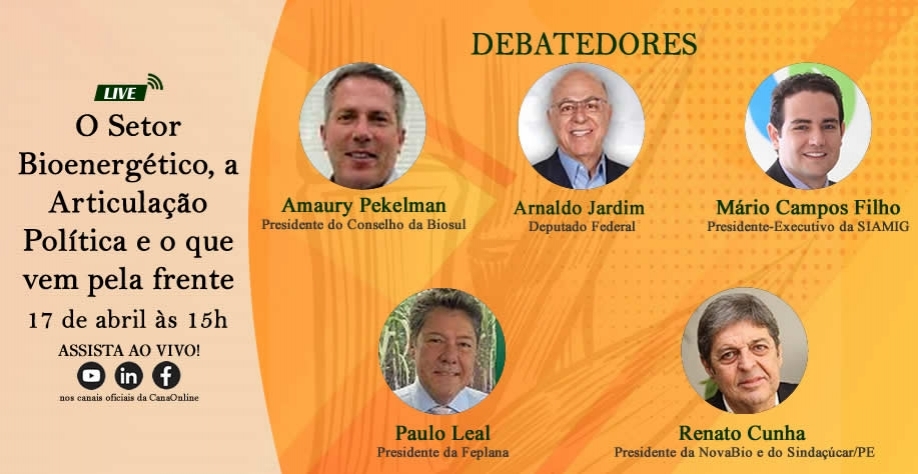 Em 17 de abril tem a live: “O Setor Bioenergético, a Articulação Política e o que vem pela frente”