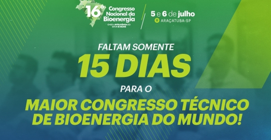Faltam 15 dias para o Maior Congresso Técnico de Bioenergia do Mundo, o 16º Congresso Nacional da Bioenergia que reúne mais de 1,6 mil profissionais nos dias 5 e 6 de julho, quarta e quinta-feira, no Campus da UNIP em Araçatuba/SP. O evento da UDOP -- União Nacional da Bioenergia tem o objetivo de fortalecer a cadeia biogenética e ampliar a disseminação de conteúdo de qualidade para todos os públicos, tornando os stakeholders em verdadeiros agentes de transformação e desenvolvimento.