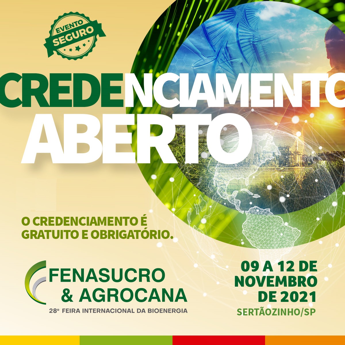 A Fenasucro & Agrocana, principal feira de bioenergia e do setor sucroenergético da América Latina, está com o credenciamento gratuito aberto para sua 28ª edição, que será realizada presencialmente entre os dias 9 e 12 de novembro de 2021, no Centro de Eventos Zanini, em Sertãozinho (SP).