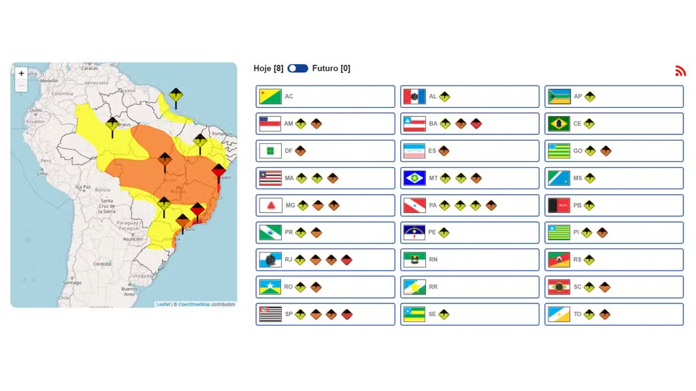 Veja quais Estados estão sob alerta do Inmet nesta quarta-feira