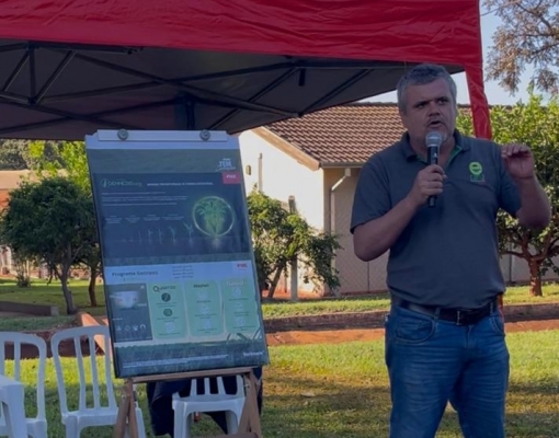 Fernando Santos, responsável pelo desenvolvimento de mercado da FMC Agrícola nas regiões Oeste de São Paulo, Norte do Paraná e Nordeste, apresentou no Cana Show – IAC as inovações do Programa Gênesis, voltado ao tratamento de mudas pré-brotadas (MPB).