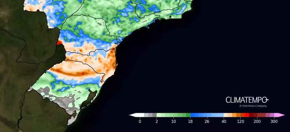 No Paraná, a previsão é de chuvas significativas também até sexta-feira. Os maiores acumulados vão se concentrar na faixa sul do Estado, com volumes de 120 milímetros. No extremo oeste, os acumulados podem até ultrapassar esse valor, com condições para alagamentos e deslizamentos, informa o boletim da Climatempo.