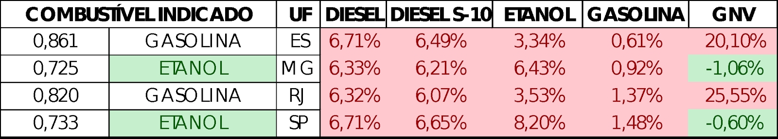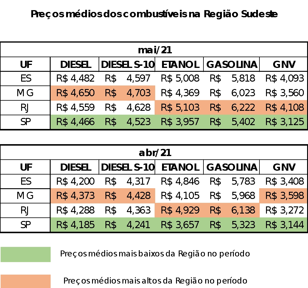 No recorte entre estados, São Paulo segue com os combustíveis mais baratos do Sudeste. O diesel comum foi encontrado a R$ 4,466 nas bombas paulistas; o tipo S-10, a R$ 4,523; a gasolina, a R$ 5,402; e o gás natural veicular (GNV), a R$ 3,125. "O etanol no estado também é destaque. Além de terem comercializado o combustível com menor valor médio do País, a R$ 3,957, os postos registraram o maior aumento do território nacional, de 8,20%", destaca Pina.
