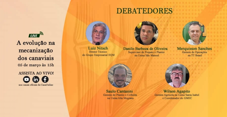 Hoje, 5 de março, tem a live: A EVOLUÇÃO NA MECANIZAÇÃO DOS CANAVIAIS