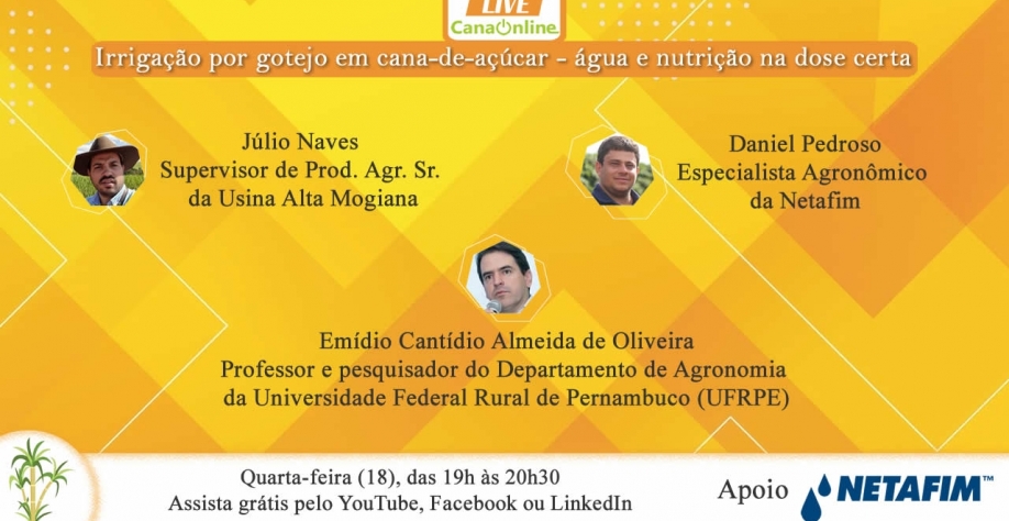 Hoje tem a live: “Irrigação por gotejo em cana-de-açúcar - água e nutrição na dose certa”