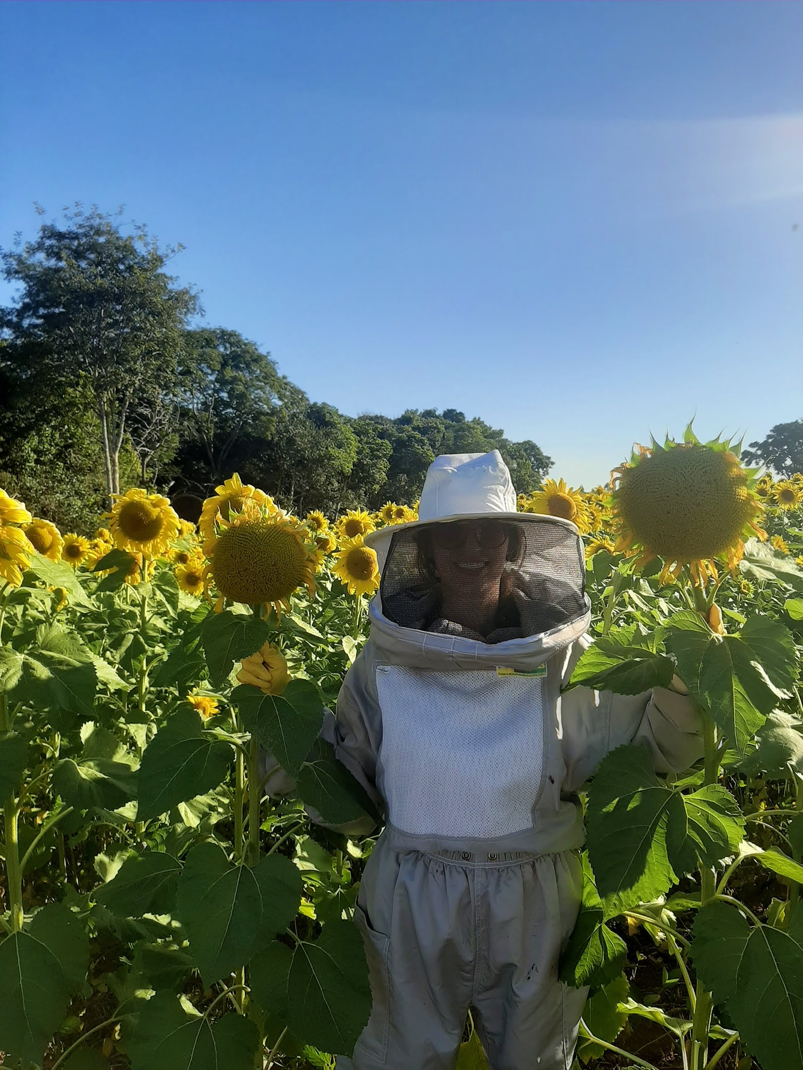 Nessas pesquisas, o casal descobriu que os girassóis eram dependentes da polinização para ter uma boa qualidade e produtividade. A informação os levou a procurar os apicultores locais e estabelecer uma parceria, que se demonstrou benéfica para ambos. "A safra do mel no Cerrado é posterior a safrinha. O consórcio é positivo para os apicultores, pois as abelhas - que seriam alimentadas artificialmente durante o inverno - estão no campo se alimentando nos girassóis", diz Simone.