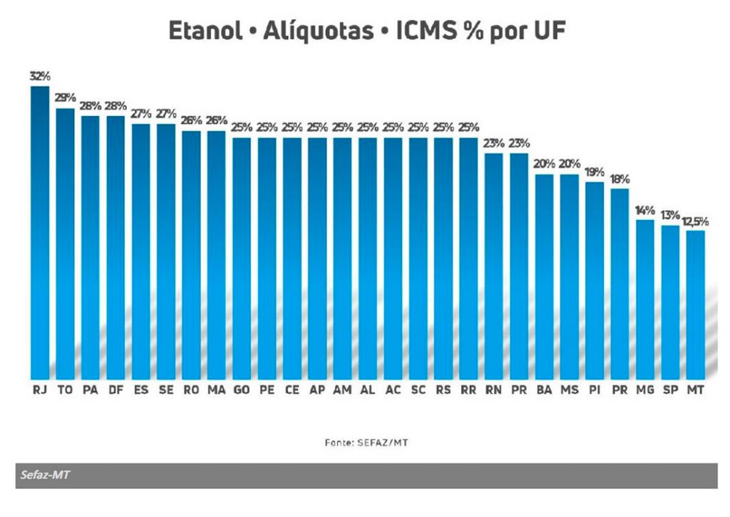 O Estado de Mato Grosso apresenta atualmente a alíquota de Imposto sobre Circulação de Mercadorias e Serviços (ICMS) de etanol mais baixa do Brasil, 12,5%. O resultado foi apontado em um levantamento realizado pela secretaria Estadual de Fazenda (Sefaz). “Temos hoje a menor alíquota de ICMS do etanol no país, cobrada desde janeiro de 2020, portanto, o aumento não tem relação com o imposto cobrado no Estado. O que precisamos é que a política da Petrobrás seja alterada para que a composição dos preços beneficie diretamente o cidadão”, afirmou o secretário-chefe da Casa Civil, Mauro Carvalho.