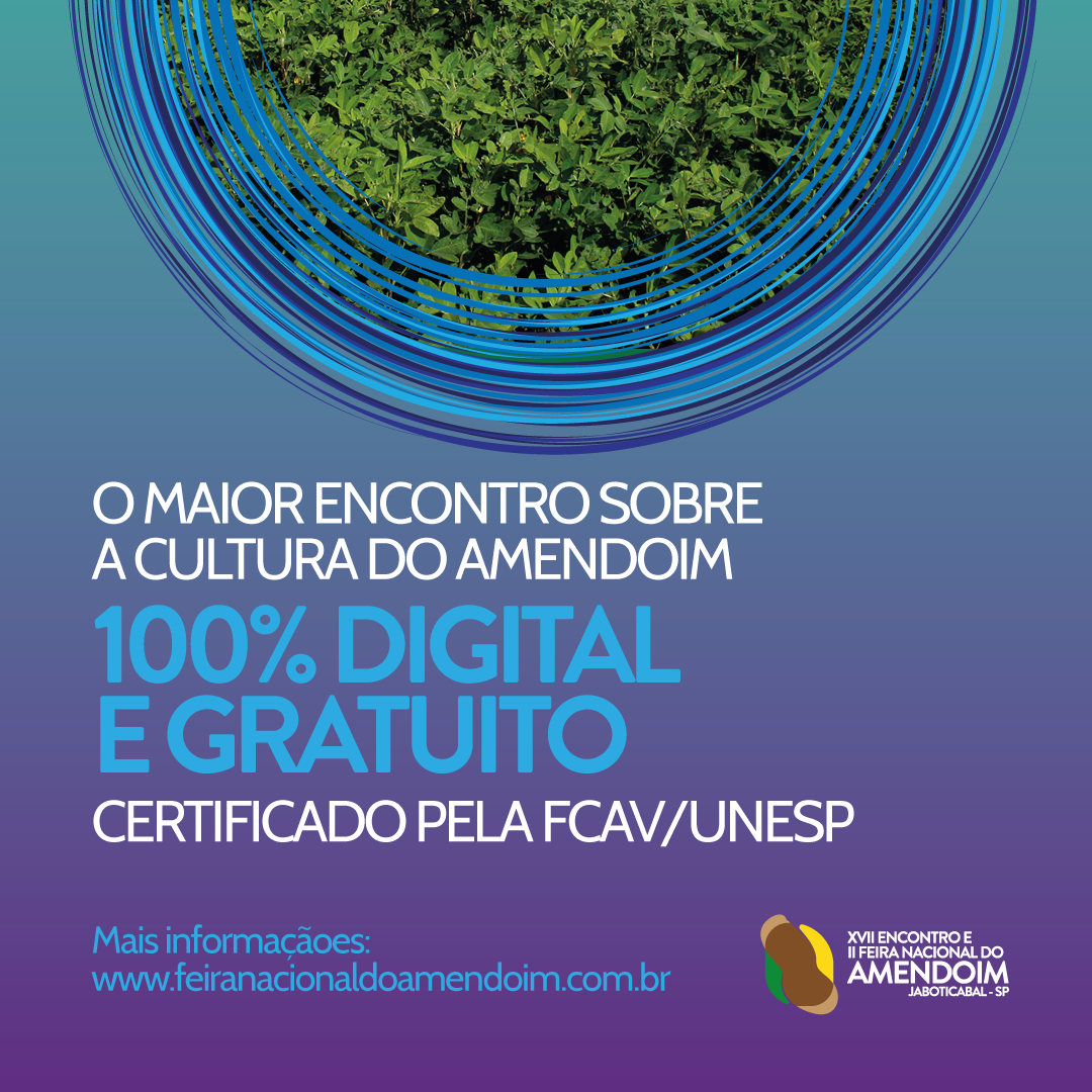 As palestras, conforme explicou Nakagi, fazem parte do XVII Encontro sobre a Cultura do Amendoim, que é organizado pela Faculdade de Ciências Agrárias e Veterinárias (FCAV) – Unesp Jaboticabal. O Prof. Dr. Pedro Luiz da Costa Aguiar Alves, da FCAV – Unesp Jaboticabal, que é organizador do Encontro, informou que a submissão dos resumos expandidos que serão apresentados na semana da feira Nacional do Amendoim, acontece até o dia 31 de julho. “O evento este ano será diferente. A abertura, a mesa redonda e o encerramento serão ao vivo. As demais atividades serão no formato de webinar. O Dia de Campo, parte do evento que é a céu aberto, será apenas virtual”, detalhou o docente da Unesp.