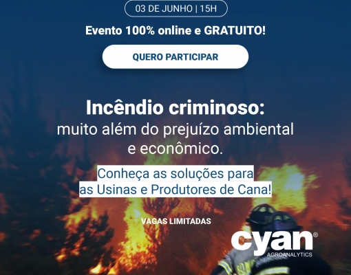 Palestra on-line, que acontecerá em 3 de junho a partir das 15 horas, abordará prevenção, controle de incêndios em canaviais e questões legais.