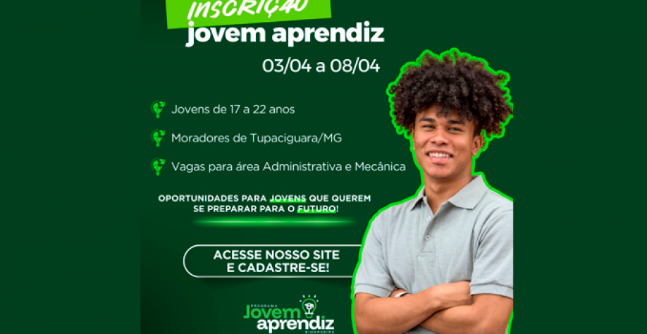 A iniciativa é voltada a jovens de 17 a 22 anos, residentes em Tupaciguara (MG), que desejam dar os primeiros passos na vida profissional.