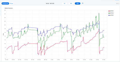 Com esse tipo de tecnologia, tanto o gerente da fazenda quanto o responsável pela irrigação têm acesso a gráficos que mostram a umidade do solo e o volume de água aplicado. Com essas informações, é possível avaliar se o manejo de irrigação adotado está condizente com as necessidades da cultura.