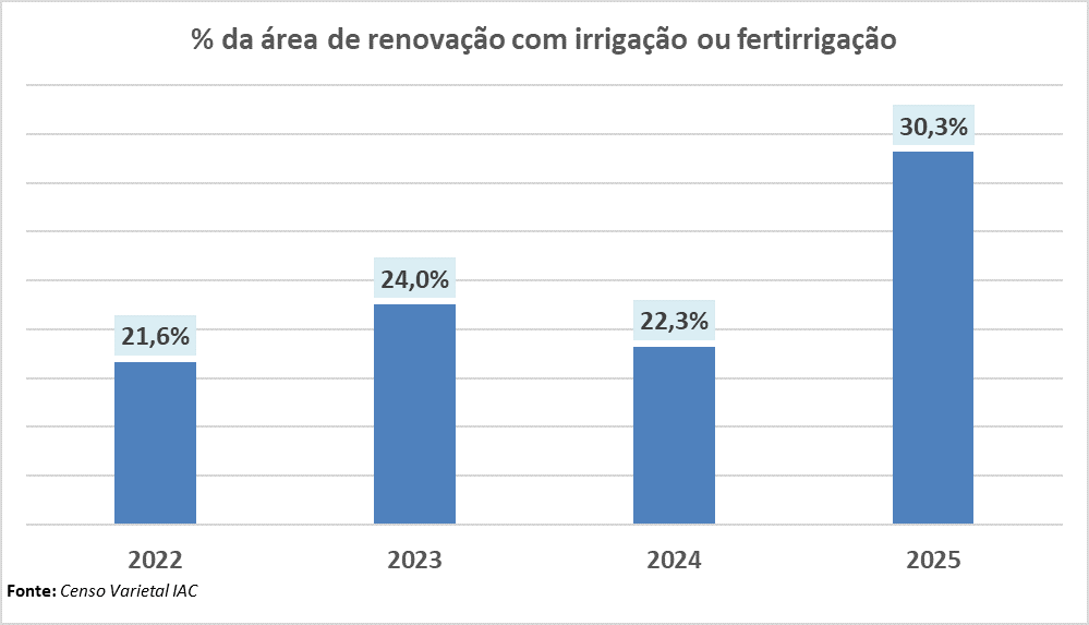 Irrigação nas áreas de renovação em 2025