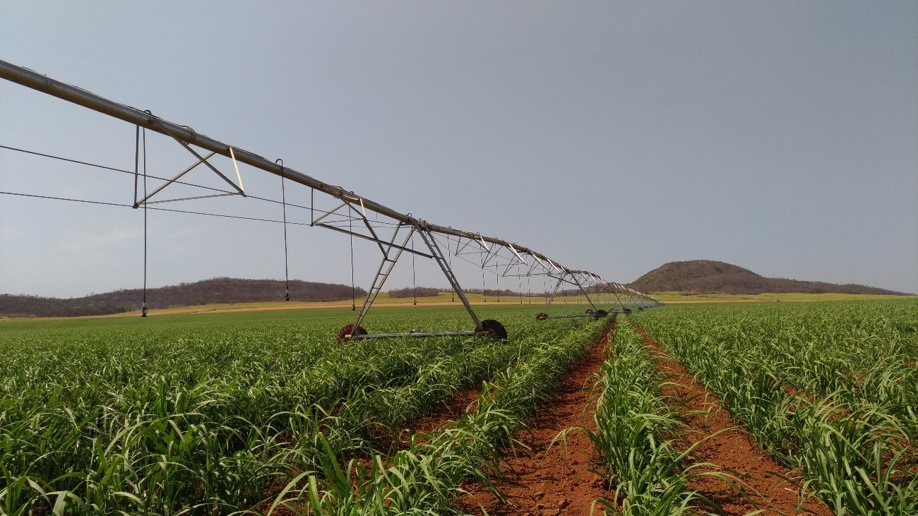 Imagem 1 - Cana-de-açúcar irrigada por pivô central em Goianésia-GO (Foto de Regina Celia Pires)