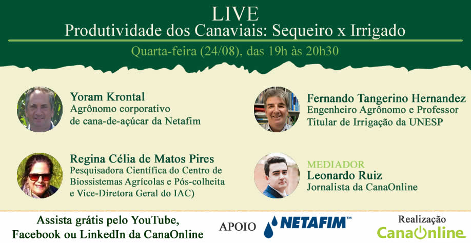 Visando elucidar esse tema e debater as reais diferença de produtividade entre áreas de sequeiro e irrigadas, a CanaOnline irá realizar nesta quarta-feira (24) a live “Produtividade dos Canaviais: Sequeiro x Irrigado”. O evento será transmitido ao vivo em nossos canais digitais (YouTube, Facebook e LinkedIn) e contará com a participação de:
