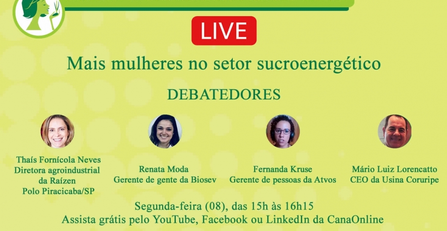 Live Mais mulheres no Setor Sucroenergético acontece em 8 de março, às 15 horas