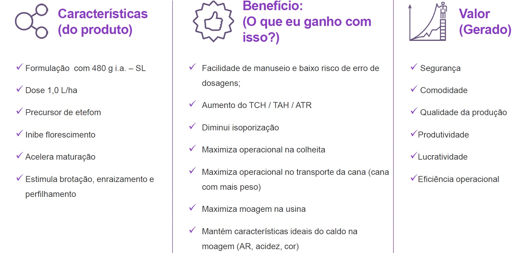 Para auxiliar o segmento, a Nufarm passou a comercializar no Brasil o produto de marca Impulse® (Etefom). Segundo o engenheiro agrônomo Murilo Borges, gerente de produtos da empresa, trata-se de uma ferramenta de alta tecnologia que beneficiará o manejo de lavouras do setor canavieiro. “O produto tem como principais características inibir o florescimento, acelerar a maturação e estimular a brotação e o perfilhamento da cana-de-açúcar.”