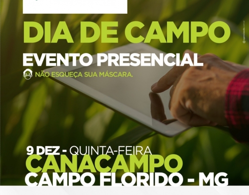 De forma presencial e respeitando as regras sanitárias vigentes, como uso de máscara, a Megacana Tech Show, promove nesta quinta, 09 de dezembro, o Dia de Campo. O evento terá início às 14h, e acontecerá na sede da Canacampo, em Campo Florido (MG).