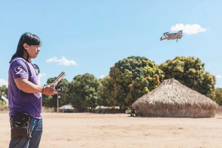 A fundação doa os drones, notebooks e outros equipamentos, além de fazer a formação técnica dos indígenas. “Os drones são usados para monitorar focos de incêndio, ocupações indevidas e áreas de desmatamento”, diz Claudia.