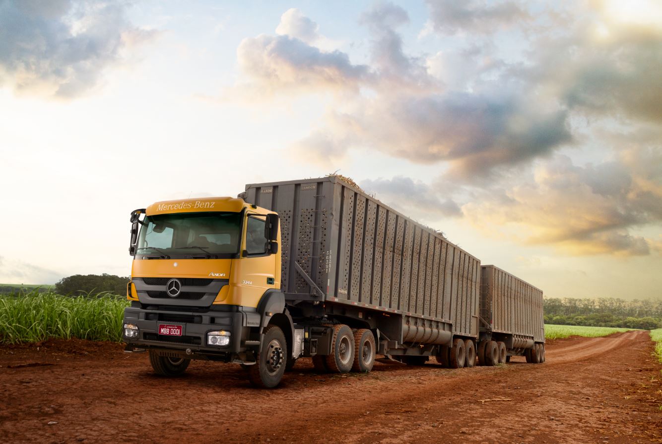 - Ampla linha de caminhões Mercedes-Benz inclui vários modelos para a movimentação da produção agrícola e para serviços de apoio no campo