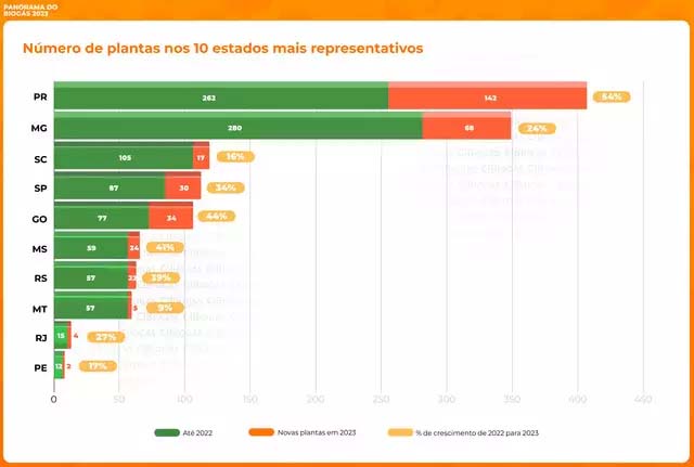 Mato Grosso do Sul está entre as unidades da federação mais representativas do Brasil em relação ao número usinas de biogás em operação. O Estado saiu de 59 plantas de produção do biocombustível em 2022 para 83 unidades no ano de 2023, um crescimento de 41%, o terceiro melhor índice do País, atrás somente do Paraná e Goiás, conforme os dados do Panorama do Biogás no Brasil 2023, elaborado pelo CIBiogás (Centro Internacional de Energias Renováveis – Biogás). O relatório traz um mapeamento dos dados sobre a produção, aproveitamento energético e potencial do biogás e biometano.