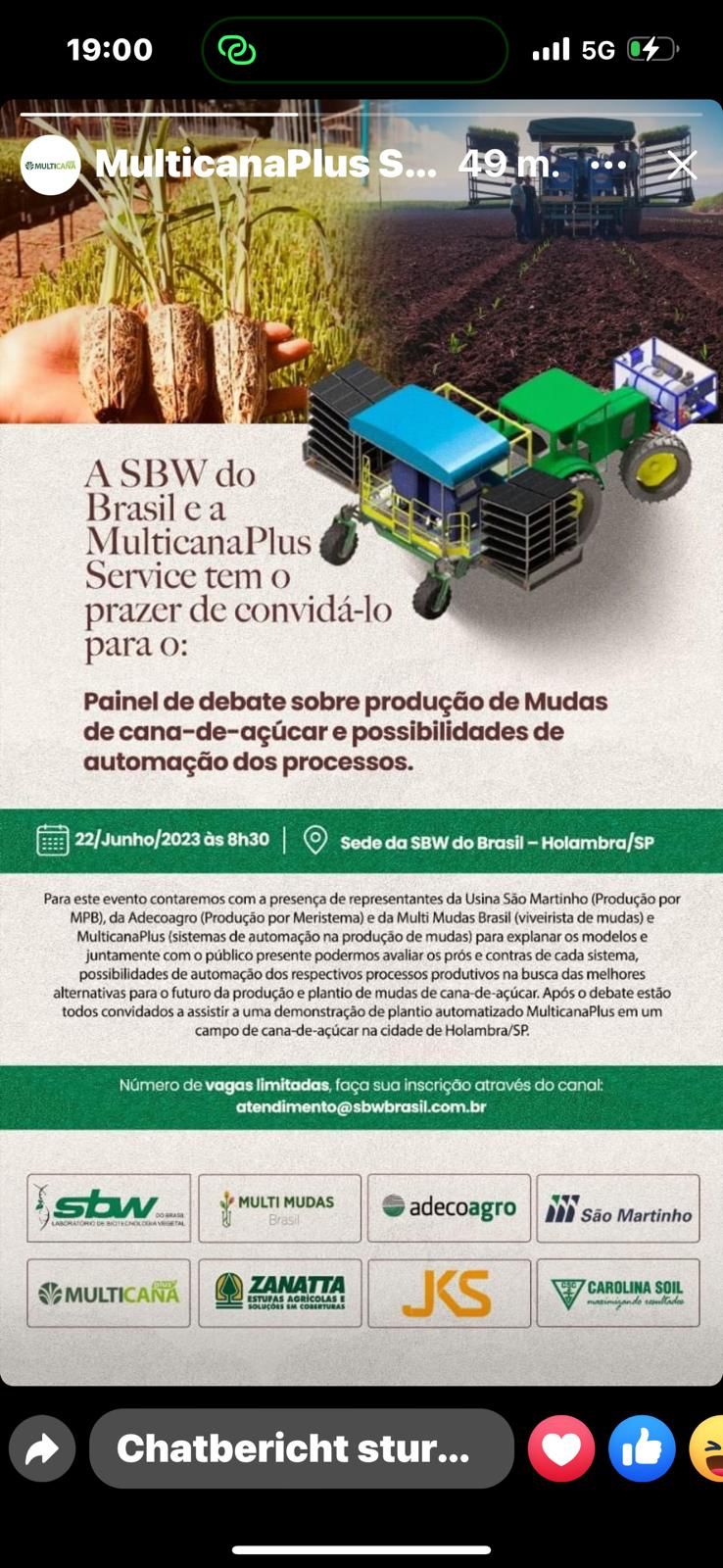 SBW Brasil e a MulticanaPlus promovem um encontro técnico em 22 de junho em Holambra, SP