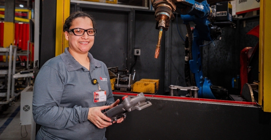História de Raquel Rodrigues, operadora de robô de solda na fábrica da AGCO Ibirubá (RS), reforça o impacto da diversidade e do avanço da automação na indústria