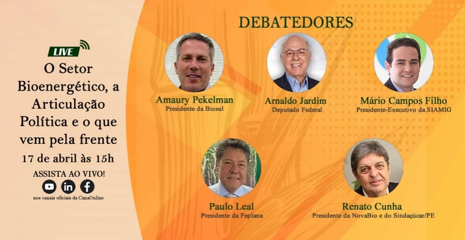 Nesta quarta-feira, 17 de abril tem a live: “O Setor Bioenergético, a Articulação Política e o que vem pela frente”
