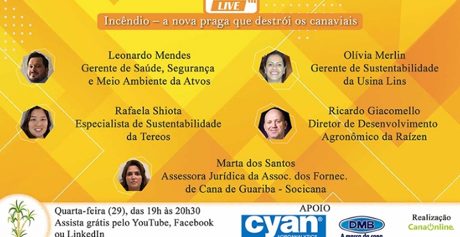 A live “Incêndio – a nova praga que destrói os canaviais” terá como debatedores:
