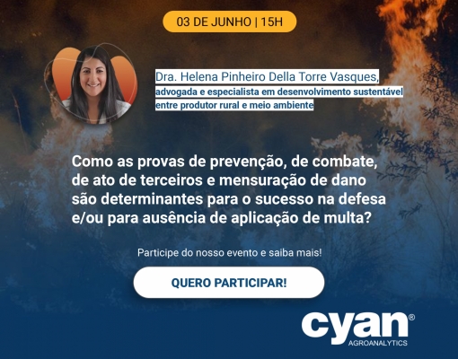Uma grande aliada da cooperação na prevenção e controle de incêndios nos canaviais é a tecnologia de ponta. E é sobre as mais avançadas opções tecnológicas e suas vantagens que Ricardo Imai, diretor da Cyan Agroanalytics, empresa especializada na Gestão de combate de incêndios - do monitoramento até a defesa – irá falar durante a palestra on-line que acontece em 03 de junho a partir das 15 horas.