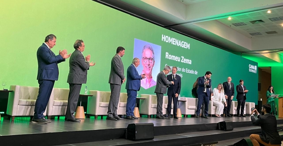 Zema foi homenageado com um troféu pelo apoio ao setor e aproveitou sua fala para apresentar os avanços de Minas Gerais, que já responde por 11% da produção nacional de cana e é o segundo maior produtor do país.